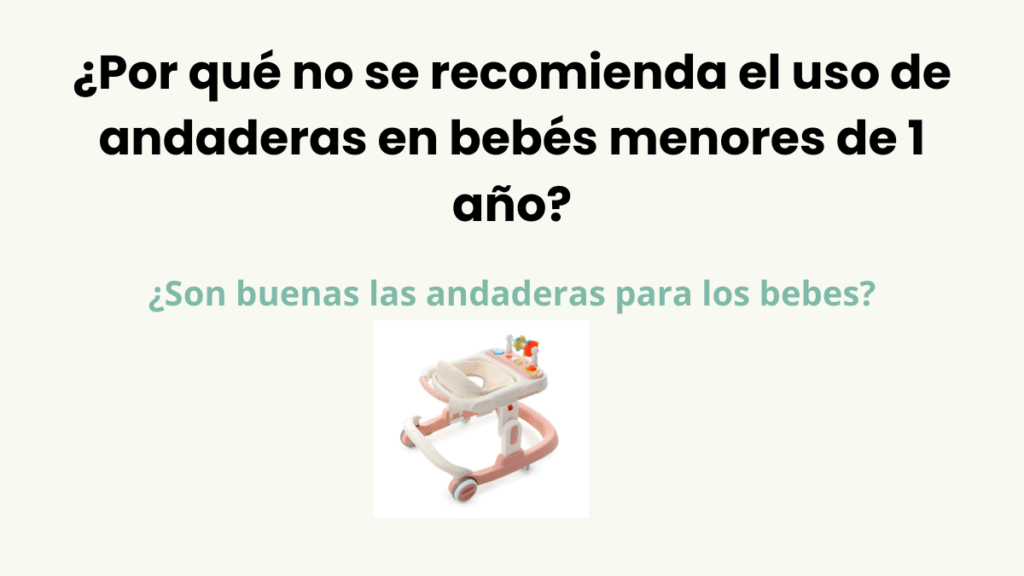 Es por eso y mas que diversas organizaciones pediátricas desaconsejan el uso de andaderas antes del año debido a sus posibles riesgos en el desarrollo infantil.